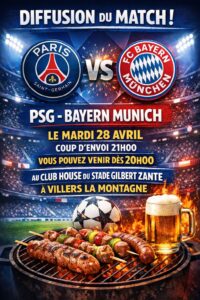 Le Club Intrépide Vlm Foot organise un barbecue pour le match de Ligue des Champions , PSG – Bayern le 28 avril.