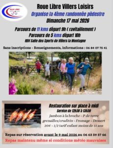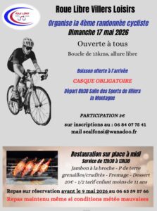 Ouverte à tous Organisée par l’Association Roue Libre Villers Loisirs Repas à réserver avant le 9 mai 2026 06 84 07 75 41