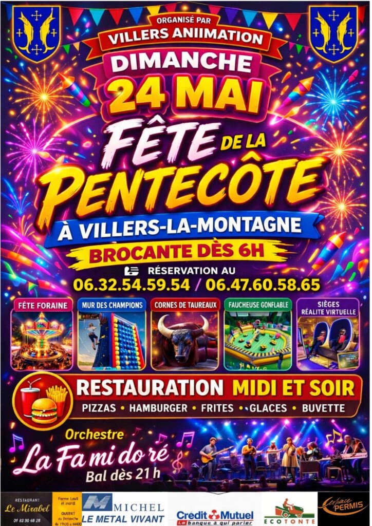 Dimanche 24 Mai 2026, VILLERS ANIMATION vous invite à partager une grande journée festive à l’occasion de la Pentecôte.Des 7h du matin, la traditionnelle brocante prendra place dans le village.…